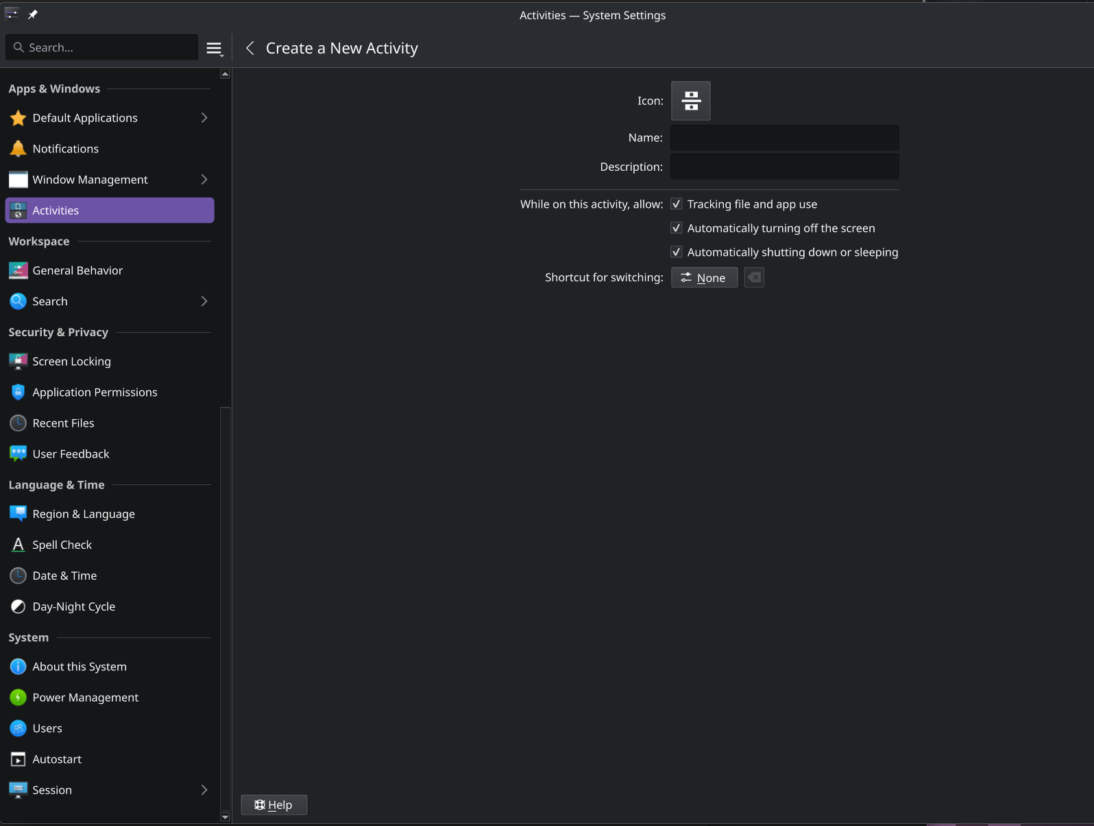 That’s nice - just don’t go crazy, if you apply a Global theme it messes up all activities - so wallpaper’s good, and my favourite is colourscheme, My alternate activity is creamy/light coloured which works well as a contrast to my dimmer/greyer comfort zone… then you have ‘activities’ options in the menu to pin/unpin various things.