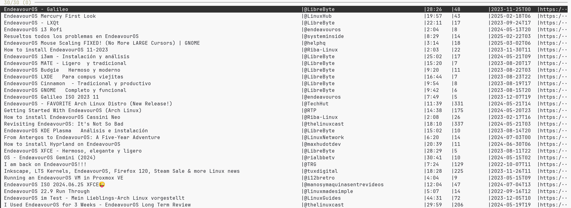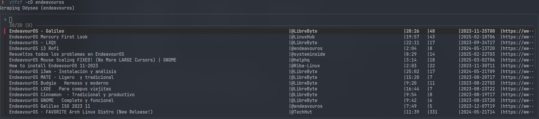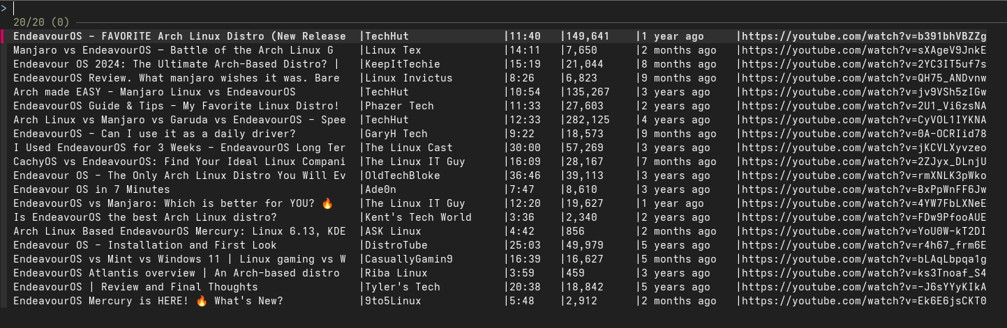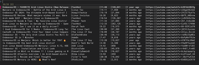 ❯ ytfzf -cO endeavouros