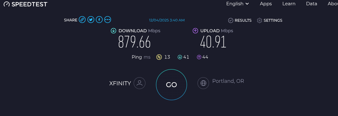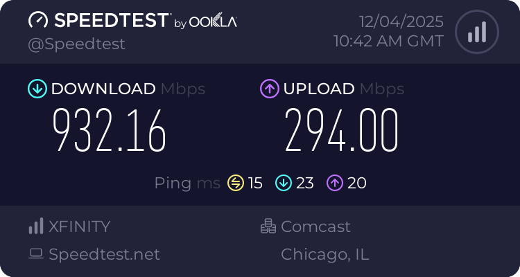 Love the download, the upload is a load of guess what. Xfinity was suppose to match the upload to the download with their last backend upgrades, but cheated us.