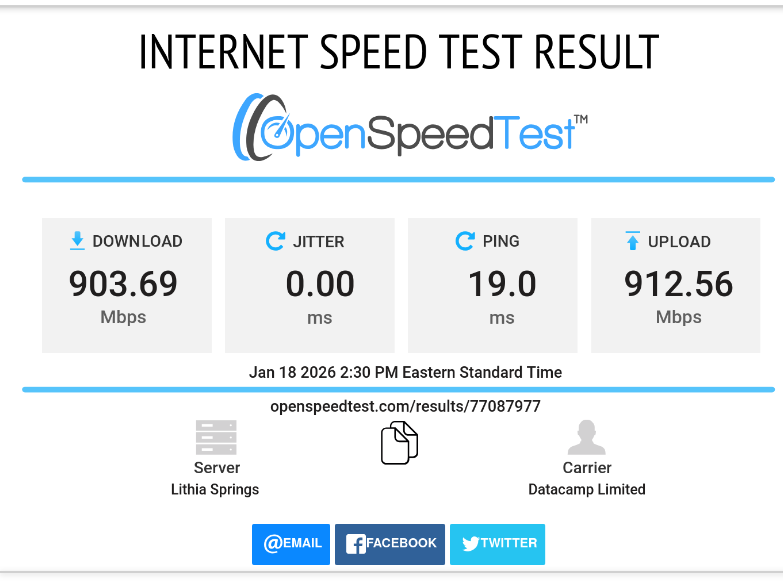 U.S. Xfinity fiber, $70 a month. Test ran while running Android box streaming TV, using VPN, and a total of 12 devices connected.