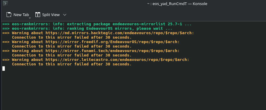 It looks like those repos are down so it’s warning you about it. But those are the endeavour OS mirrors, you need to update the arch ones as well. If it helps, I run the following commands in the terminal every three or four months: