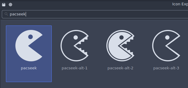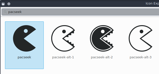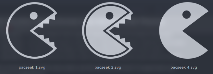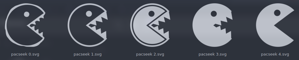 - pacseek 0 – The original icon, converted to SVG using Trace Bitmap. This is the one currently used in the icon set.