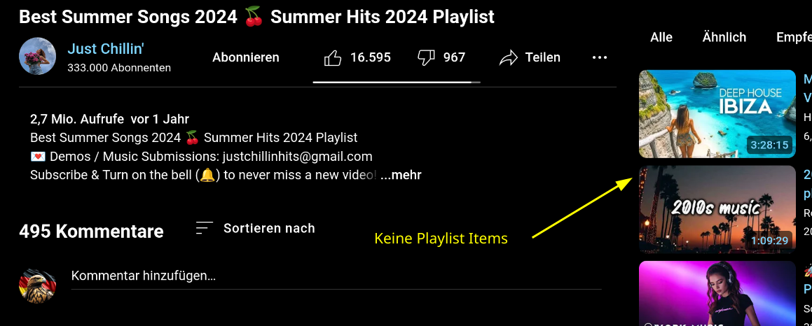 Dennoch ist es keine Playlist, die Nummerierung fehlt. Wenn ich die Songs trennen möchte, müsste ich das Video splitten. Anhand der Sprungmarken kann man wohl das Video nicht mit yt-dlp auftrennen.