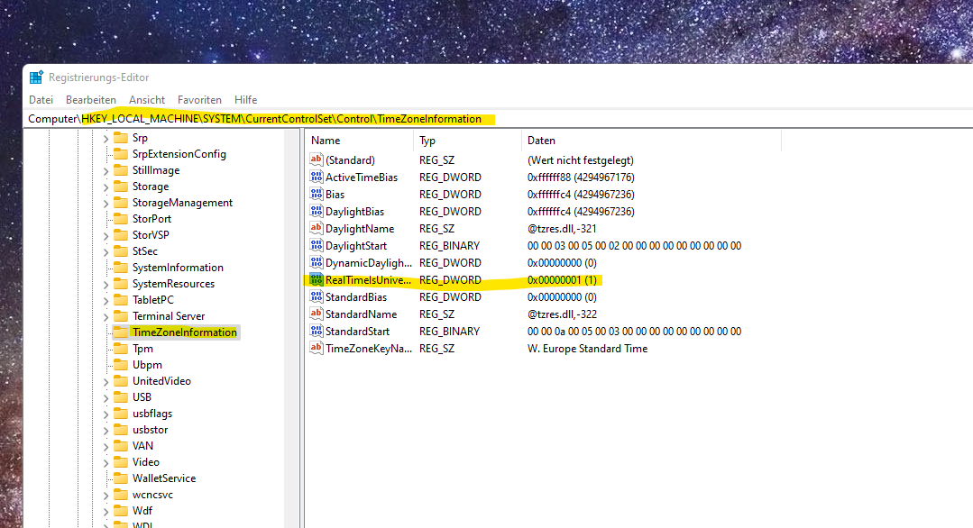 Windows die Zeit als UTC erkennt und erst dann zur eingestellten Zeitzone konvertiert. Hierzu muss man folgendermaßen vorgehen: